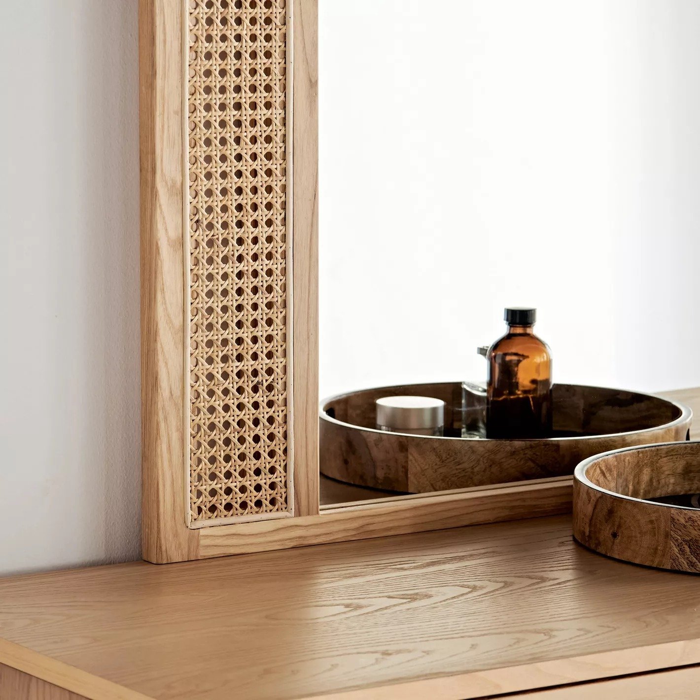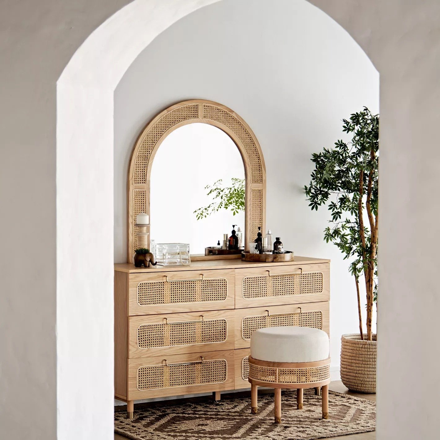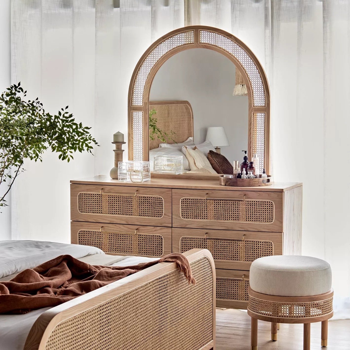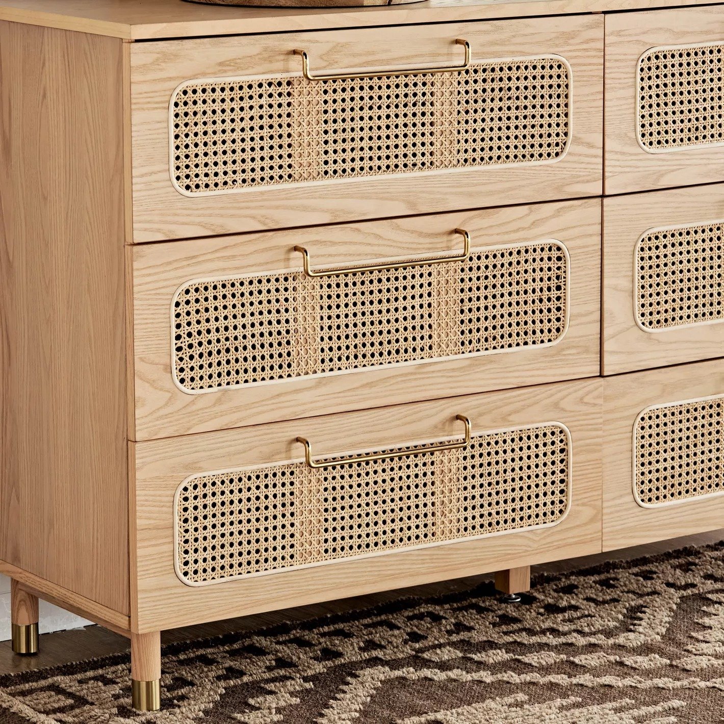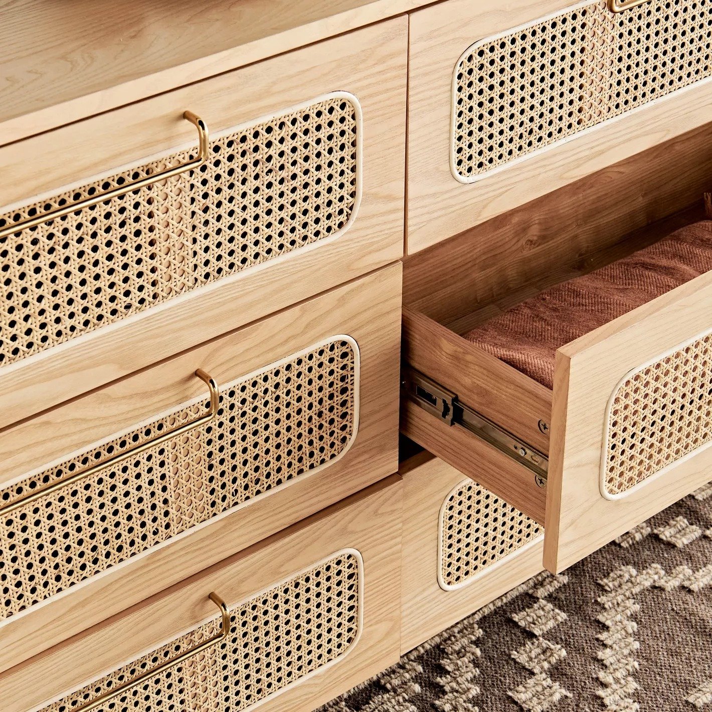Noziya Funriture Mango Wood Rattan Dresser Without Mirror