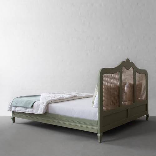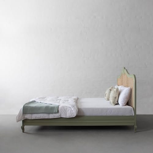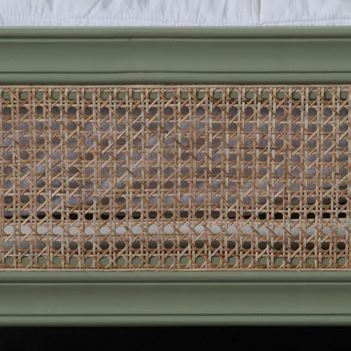 Noziya Solid Mango Wooden Rattan Bed, a perfect blend of elegance and durability for your bedroom, hotel, or home. Crafted with precision from high-quality solid mango wood, this bed boasts a unique green finish that adds a touch of sophistication to any space. The highlight of this bed is its exquisite rattan headboard, providing a stylish focal point and a comfortable support for leaning back and relaxing. With its timeless design, this bed seamlessly complements various interior styles, making it a versatile and enduring addition to your living space.