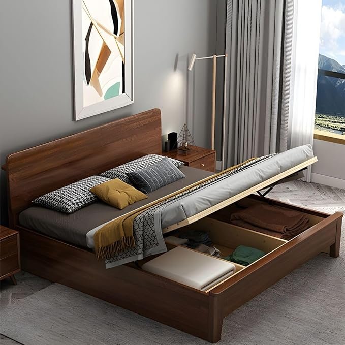 Noziya Solid Sheesham Wooden Modern King Size Bed with Storge for Bedroom, Hotel & Home