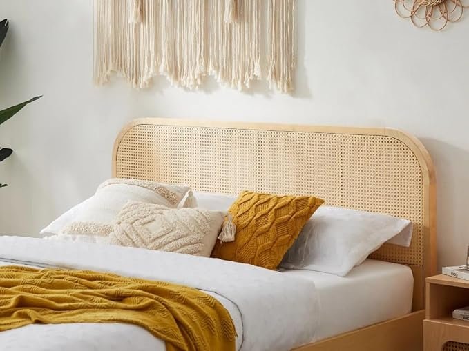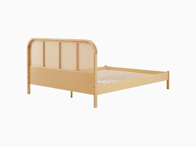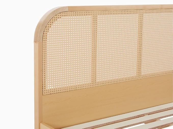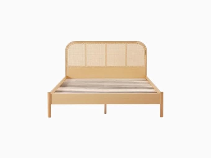 Noziya Solid Mango Wooden Queen Size Bed with Rattan Headboard & Without Storage for Bedroom, Hotel & Home