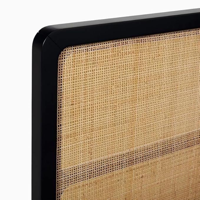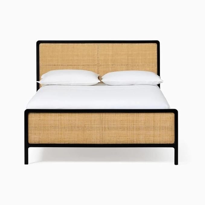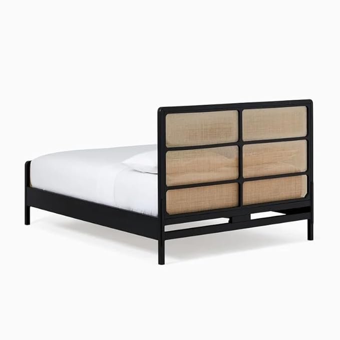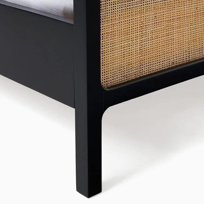 Noziya Furniture Solid Sheesham Wooden Bed. Crafted with exquisite attention to detail, this bed features a striking rattan headboard that adds a touch of natural elegance to any space. The sleek black finish complements a variety of décor styles, while the solid Sheesham wood construction ensures durability and longevity. Whether for your bedroom, hotel, or home, this bed is designed to provide both style and comfort for years to come.