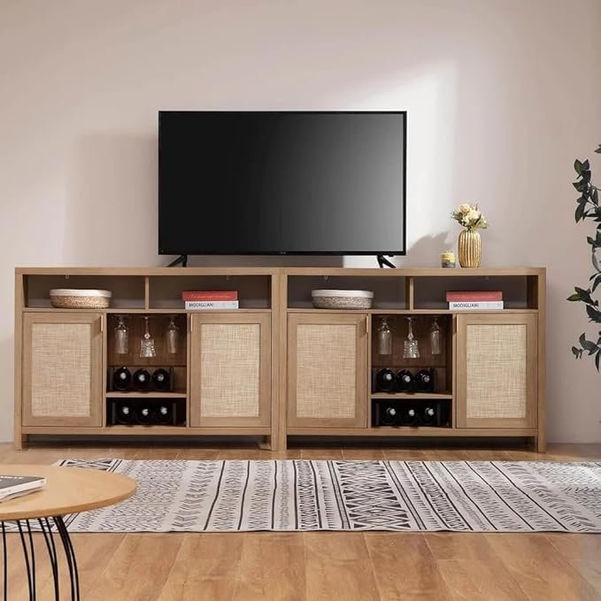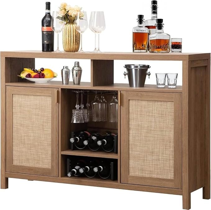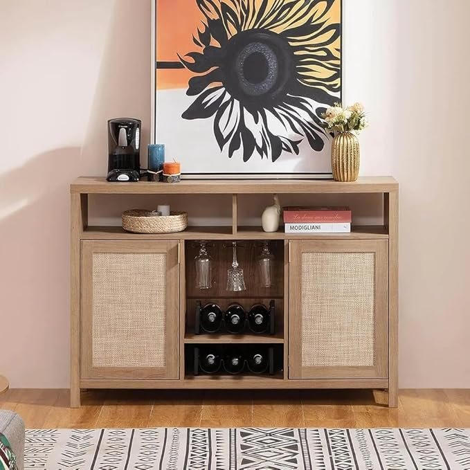 Noziya Furniture Solid Wooden Rattan Bar Cabinet, a beautifully designed piece that merges functionality with rustic charm. Crafted from high-quality solid wood and featuring a natural finish, this cabinet highlights the wood’s rich texture and warm tones. The cabinet includes two doors with stylish rattan detailing, adding a touch of elegance and artisanal appeal. Inside, it offers versatile shelf storage, ideal for organizing bar essentials, glassware, and bottles. Perfect for enhancing your living room, dining area, or home bar, this cabinet combines timeless design with practical storage solutions, making it a sophisticated addition to any home decor.