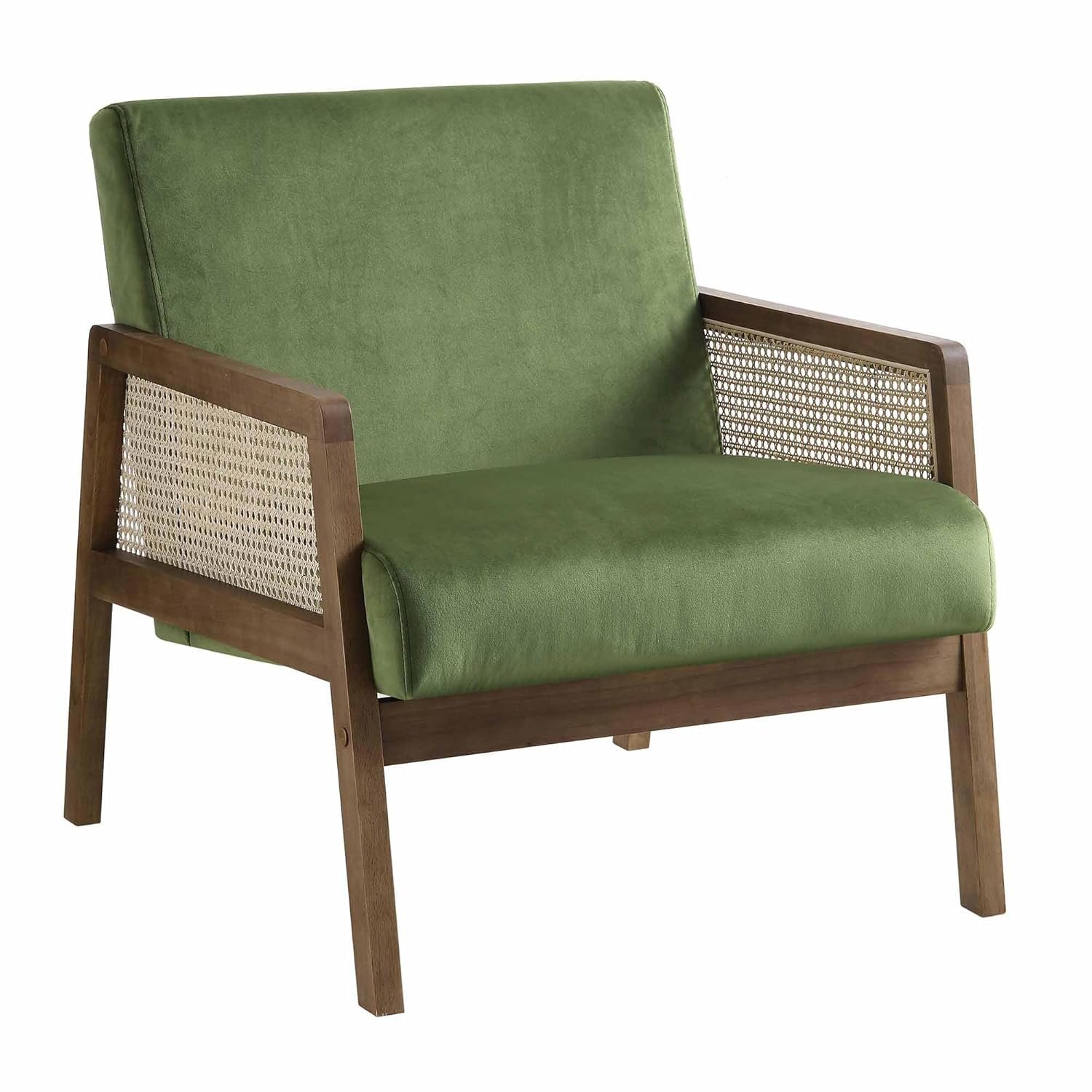 Noziya Furniture Wooden Rattan Arm Chair | Lounge Chair | Accent Chair with Cushion for Living Room Bedroom