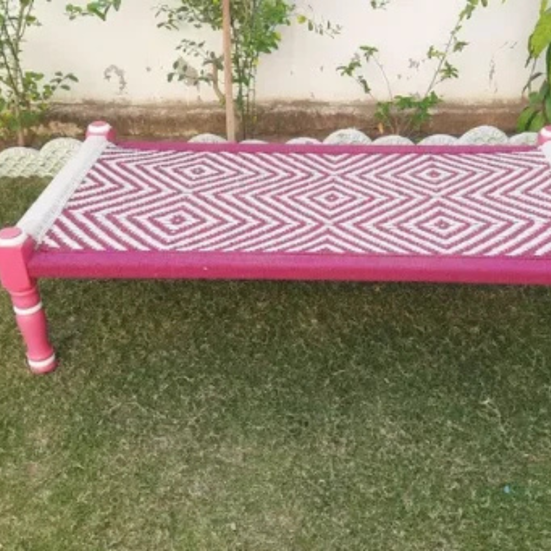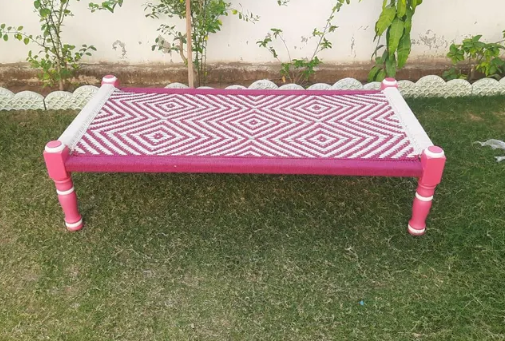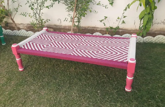 This pink charpai is both decorative and practical, perfect for various uses: