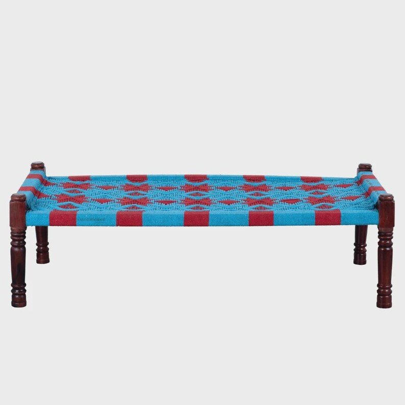 NoziyaFurniture Traditional Handwoven Charpai Bench | 72 | Blue & Maroon Indian Rope