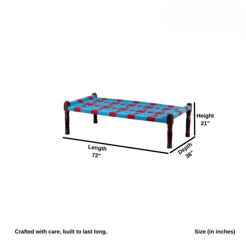 The striking blue and maroon rope weaving adds a bold pop of color, while the solid wooden frame brings strength, durability, and timeless charm. Whether you use it as a bench, daybed, or decorative accent, this charpai is the perfect fusion of functionality and artisan-made beauty.