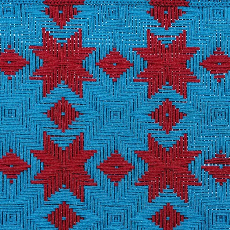 Crafted with a sturdy hardwood frame — available in mango, acacia, or sheesham wood — and woven with high-quality cotton or nylon rope in rich blue and maroon tones.