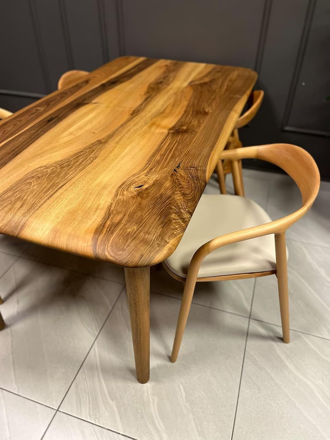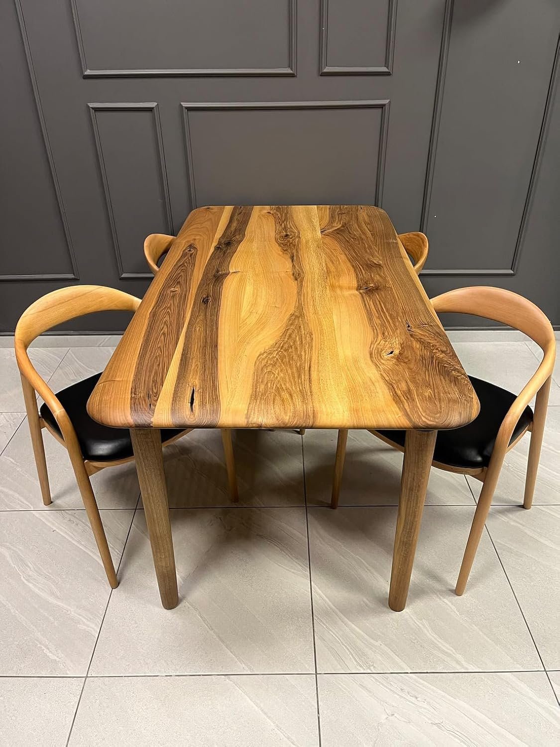 Noziya Furniture Solid Wooden 4-Seater Dining Table set, complete with four elegantly designed chairs. Crafted from high-quality solid wood, this dining set features a stunning natural finish that highlights the rich grain and texture of the wood, ensuring durability while adding a warm, inviting touch to your dining room or hall. The table’s compact design is perfect for smaller spaces, yet it comfortably accommodates up to four people, making it ideal for family meals, intimate gatherings, or casual breakfasts. The robust construction promises stability and longevity, allowing you to enjoy countless meals and memories around this exquisite centerpiece. Each chair is thoughtfully designed to provide comfort and support, featuring a sturdy frame and ergonomic design that encourages relaxation during meals. The combination of the table and chairs creates a cohesive look that enhances the overall aesthetic of your space. Versatile in style, this dining set complements various decor themes, from modern to rustic, making it a perfect fit for any home. Whether you’re entertaining guests or enjoying a quiet dinner, the Noziya Furniture 4-Seater Dining Table and Chair set brings elegance and functionality to your dining area, creating a welcoming atmosphere for all. Transform your home with this beautiful, practical addition, where every meal becomes a cherished occasion.