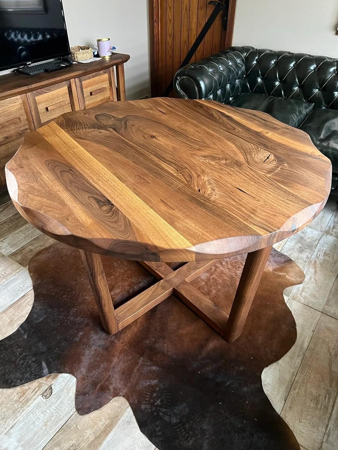 The Noziya Handmade Walnut Finish Dining Table, a masterpiece crafted with precision from sheesham wood – renowned for its durability and distinctive grain patterns. The rich walnut finish adds an elegant touch, making it a standout piece in any kitchen, farmhouse, or modern dining setting. This round dining table is designed with versatility in mind, serving equally well as a farmhouse dining table, a contemporary centerpiece, or a spacious breakfast table. With a diameter of 20 inches and a height of 29.52 inches, it provides ample surface area for various activities, from family meals to work or entertaining guests.