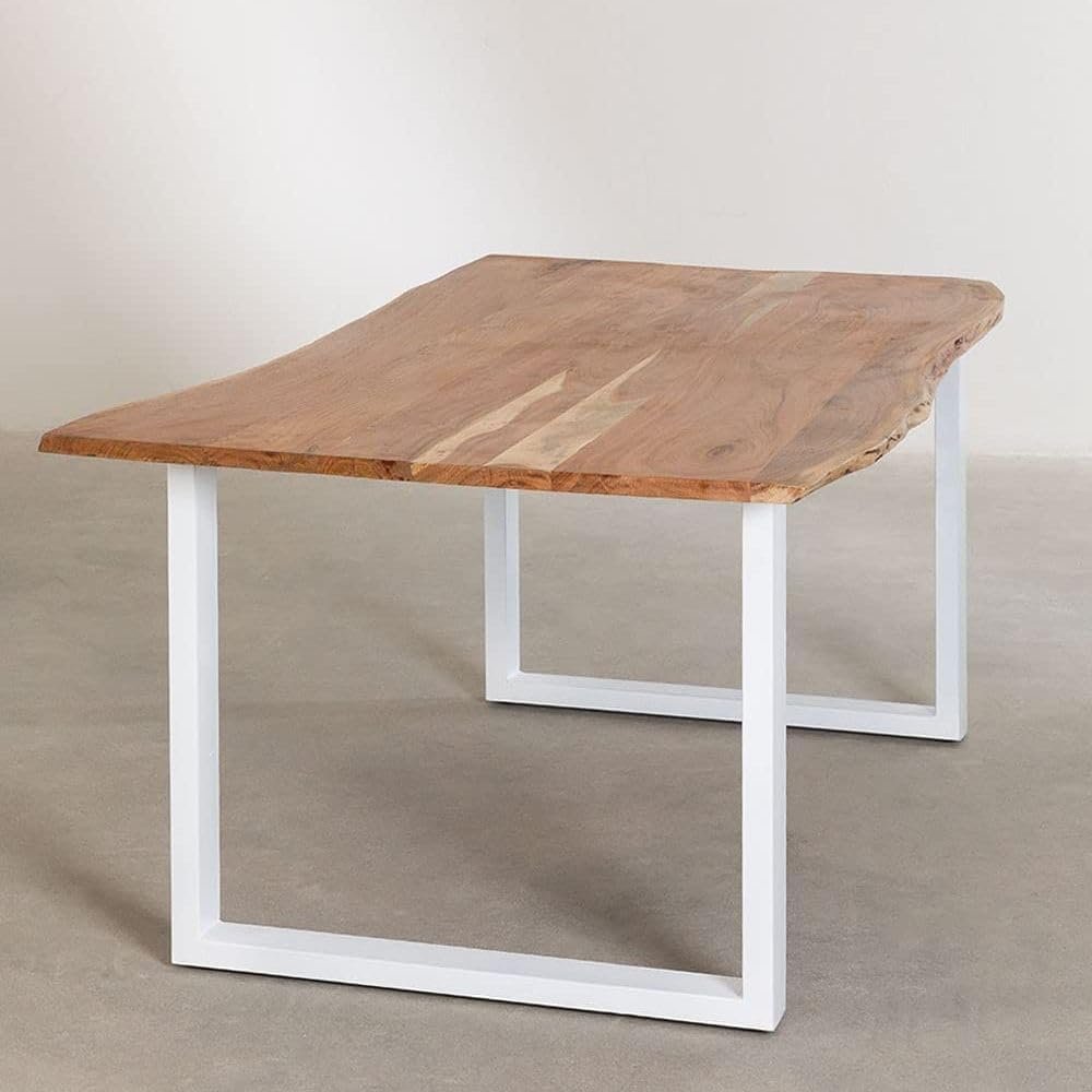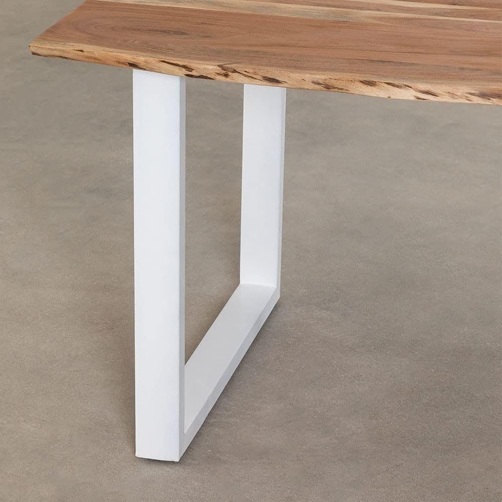 Noziya Furniture Solid Sheesham Wood Live Edge Dining Table | 4 Seater | Natural Finish, White Metal U-Legs | Table for Home, Kitchen, Dining Room & Office (Chairs Not Included)